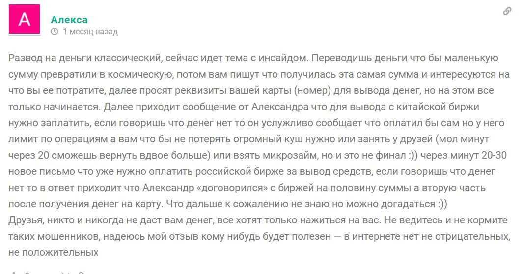 Александр Гурин и его Телеграмм канал имеют очень плохую репутацию в Интернете: все отзывы написаны только в негативном ключе, а также имя парня можно встретить во многих списках мошенников. По отзывам можно понять, что подписчики и просмотры на канале Толстый кошелек накручены ботами. Саша кинул немалое количество людей на деньги, следуя схеме, которая описана нами выше.