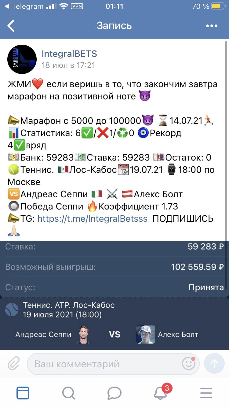 Integral Bets отзывы реальных людей о Телеграмм канале, группе в Вконтакте
