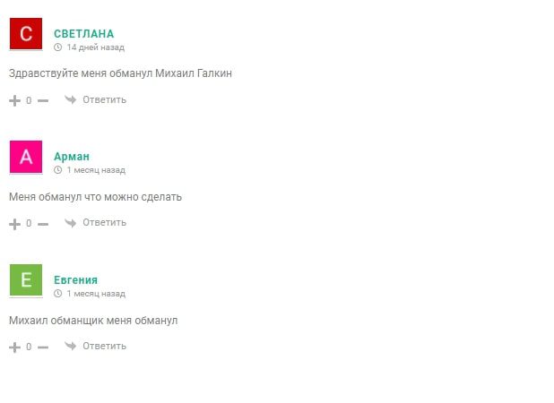 Как мы уже отмечали выше, в телеграм-канале Галкина Михаила Сергеевича публикуются только положительные отзывы подписчиков. Но вот в Интернете можно найти негативные обзоры на работу раскрутчика и реальные жалобы от клиентов.