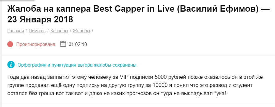 Надеюсь мой отзыв был полезен для Вас, оставляйте свои комментарии об этом непорядочном каппере Best Capper in Live.