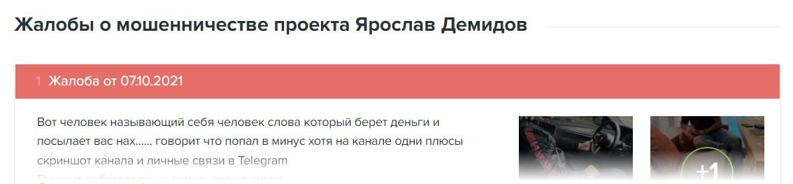 Если рассматривать индивидуальное сотрудничество, то можно увидеть несколько скринов, где показаны выигрышные позиции и диалог с пользователем. Если даже комментарии и реальные, то написаны по любому после нескольких плюсовых исходов. Сторонние сайты и независимые форумы показывают максимально негативную картину. Обзоры на Ярослава Демидова капера и отзывы о нем все до одного отрицательные. Основные жалобы поступают именно на низкую проходимость и отсутствие адекватных статистических данных.